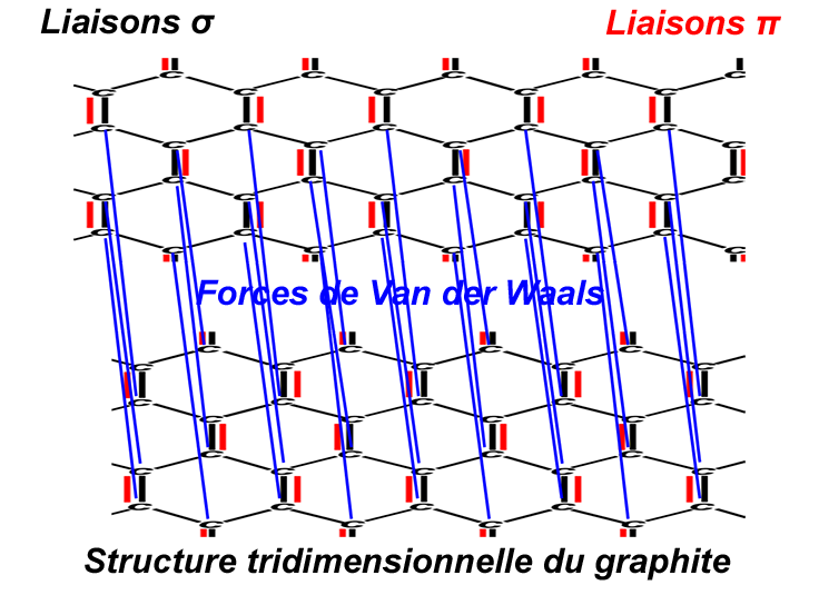 "l'ensemble des transformations subies par une roche (sédimentaire, magmatique ou métamorphique) sous l'effet de modifications des conditions de température, de pression, de la nature des fluides et, parfois, de la composition chimique de la roche. Ces transformations, qui peuvent être minéralogiques, texturales, chimiques ou encore structurales, amènent à une réorganisation des éléments dans la roche et à une recristallisation des minéraux à l'état solide." Dans le graphite, les atomes de carbone s’organisent en feuillets hexagonaux empilés non compacts, nommés graphènes (Fig. 1). Chaque atome est lié de manière covalente à 3 autres atomes dans un même plan, ce qui confère à la structure une grande stabilité planaire, mais une faible cohésion entre les couches (Fig. 2). Celles-ci se délitent facilement, d'où l’usage du graphite comme mine de crayon.